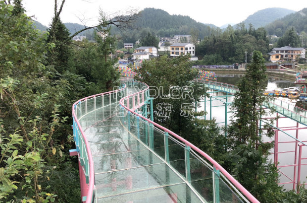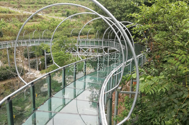 現(xiàn)代化的玻璃與自然生態(tài)的山林、靜謐的山體形成極為鮮明的對(duì)比。玻璃滑道巧妙的利用自然山川的優(yōu)美環(huán)境,又較好的保護(hù)了山地和植被,是山地旅游景區(qū)中最靚麗的風(fēng)景線。