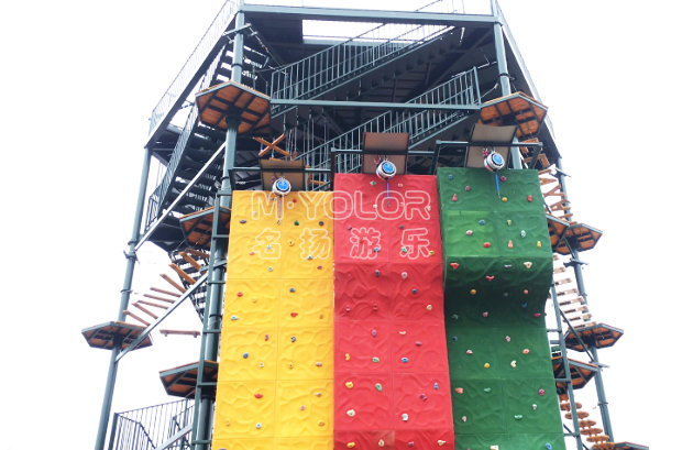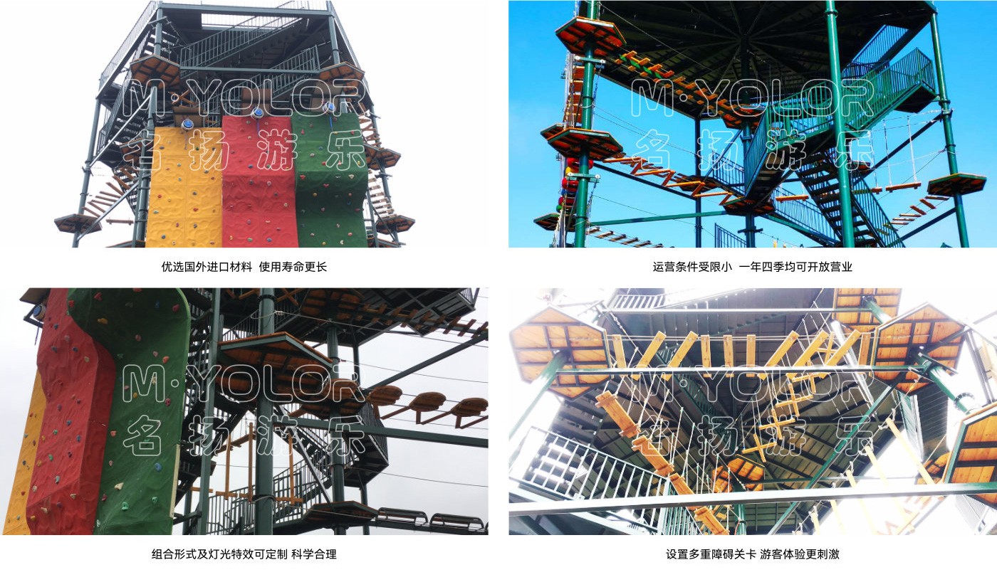 鉆石挑戰塔高空拓展器材-拓展高空架,防止兒童擅自攀爬設計。攀爬設計且符合人體工程學尺寸,攀爬舒適,安全系數高。豪華大方,堅固耐用。學員攀爬防掛繩設計。教練學員分保設計,充分考慮安全需要。學員雙保護,符合國際器材使用標準。斷橋伸縮設計,適用不同人群。