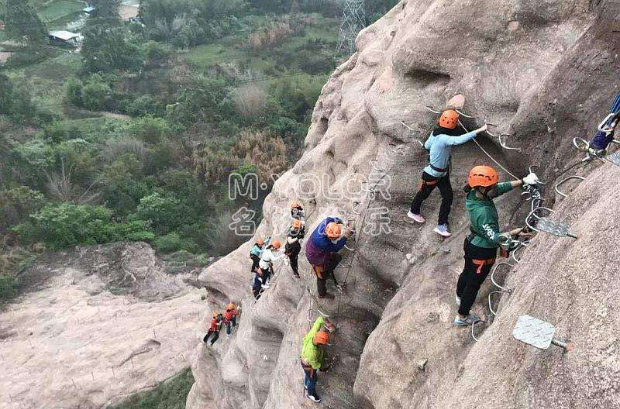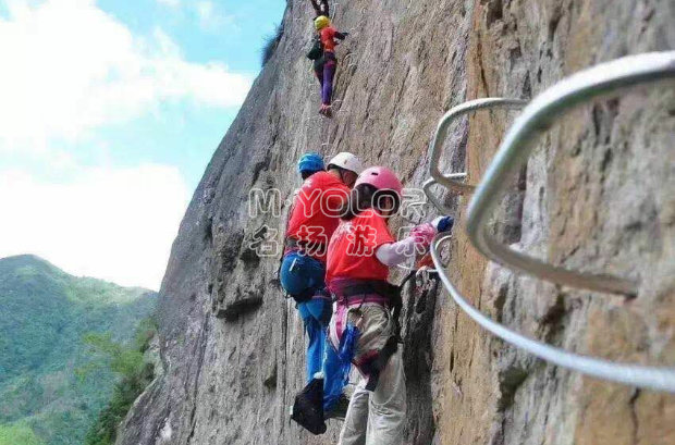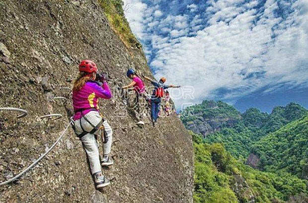 飛拉達是指在山體巖壁上建設,由鋼扶手、腳踏、生命鋼纜等構成的攀登徑道,讓不具備攀巖能力的人也能攀上陡峭的巖壁。保留了野外攀巖的驚險刺激,達到鍛煉體能和意志的目的,同時大大降低了對攀爬者的專業(yè)技術要求,在安全有充分保障的前提下,讓普通人也馳騁懸崖,會當凌絕頂,獲得極大的精神享受。