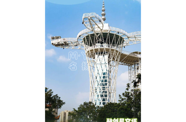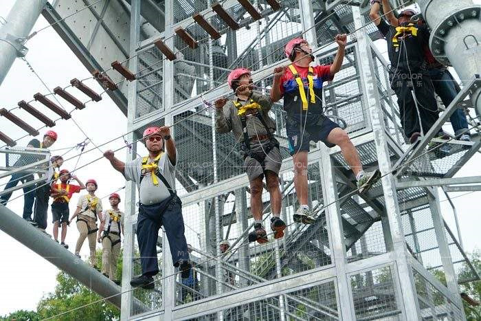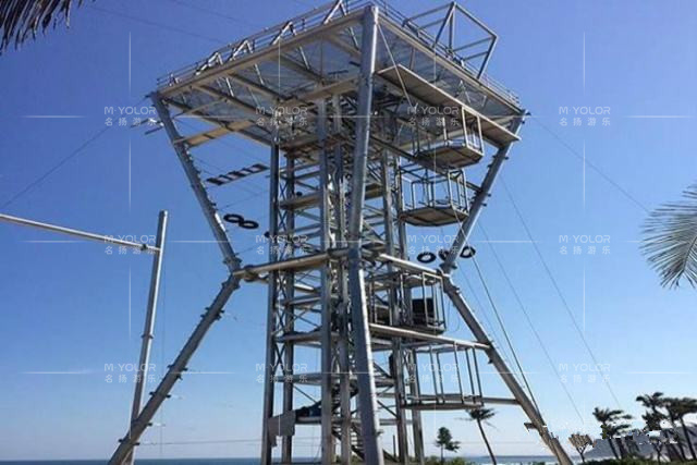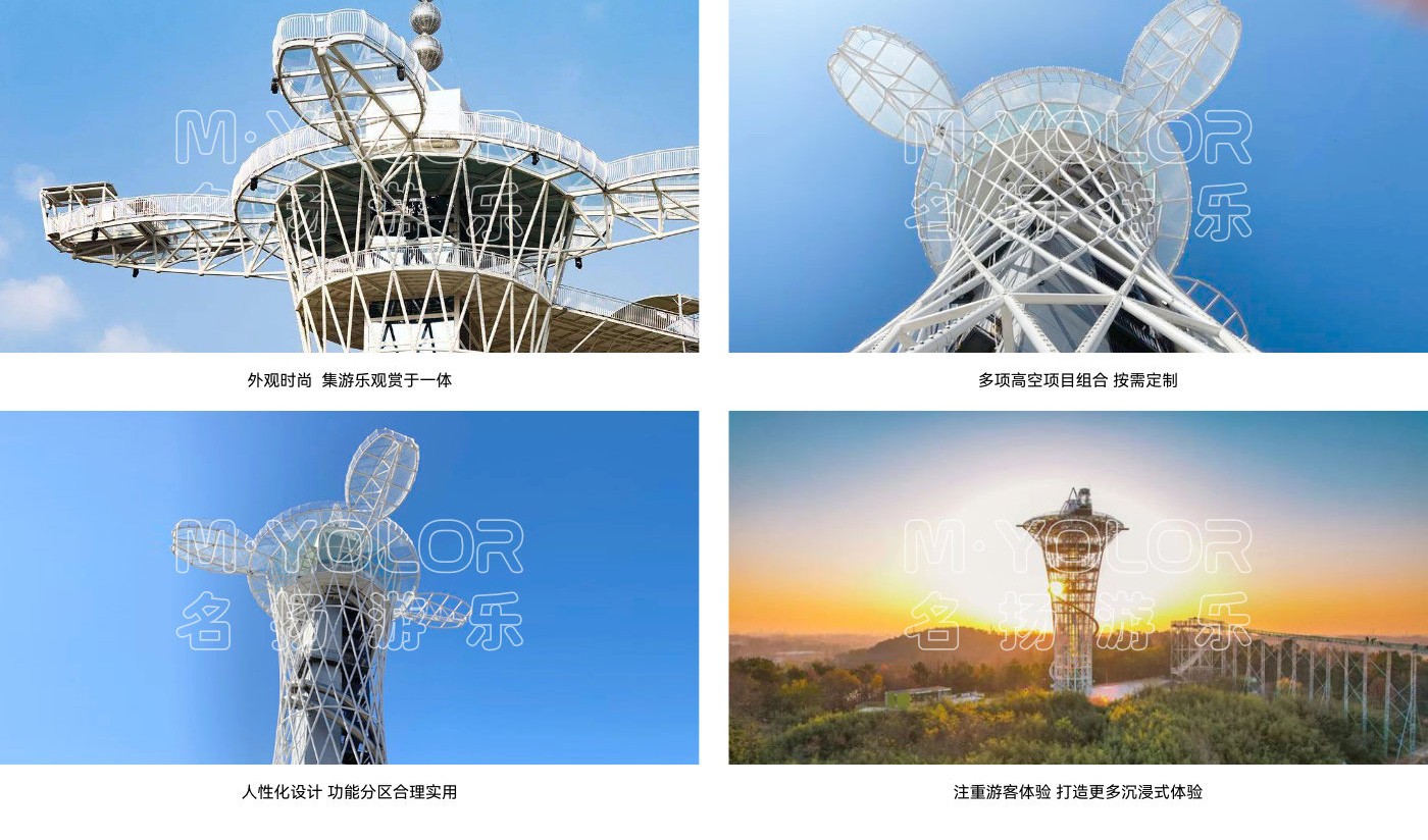 小蠻腰挑戰塔將各種無動力游樂項目集合在一個塔架上包括:叢林穿越、高空拓展、滑道、高空秋千、速降、滑索、攀巖等;項目一次性容納隊伍多,挑戰項目多,能充分展示游客的挑戰價值,塔頂還有玻璃觀景平臺,讓游客體會“一覽眾山小”的愜意!